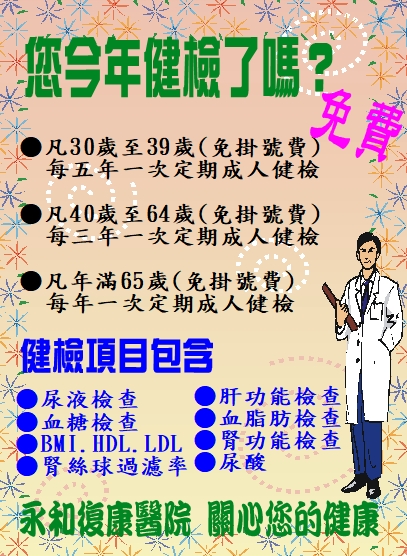 ◎ 本院提供特色醫療:復健科: 兒童遊戲治療,各種能力課程、中風復健,各種酸痛治療。 內科:各種慢性疾病及皮膚病,健康檢查。 自費體檢:勞工/膳食體檢、60歲-67歲/68歲-69歲職業汽車審驗、機車/汽車考照體檢。