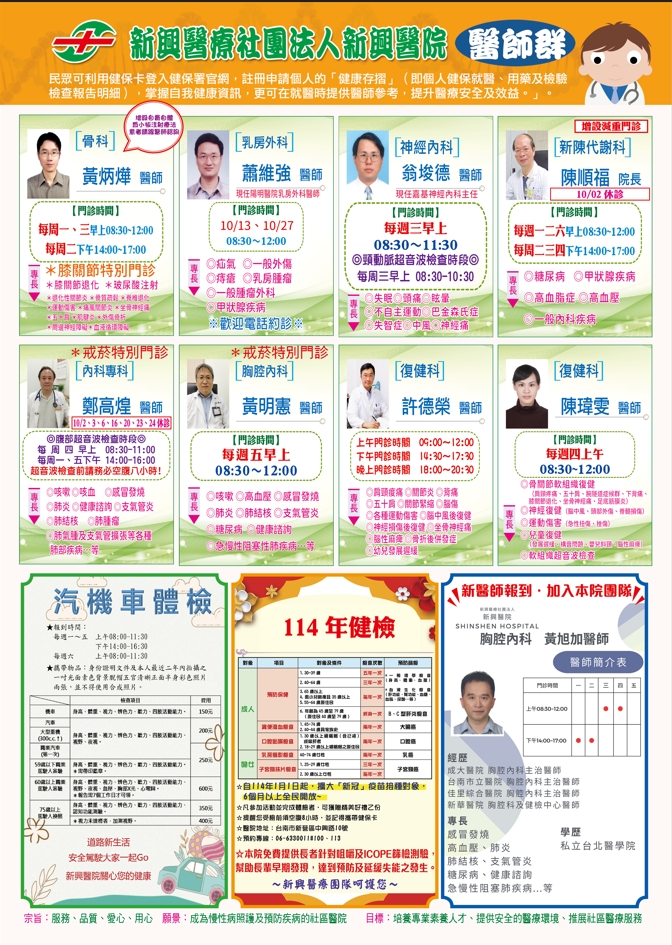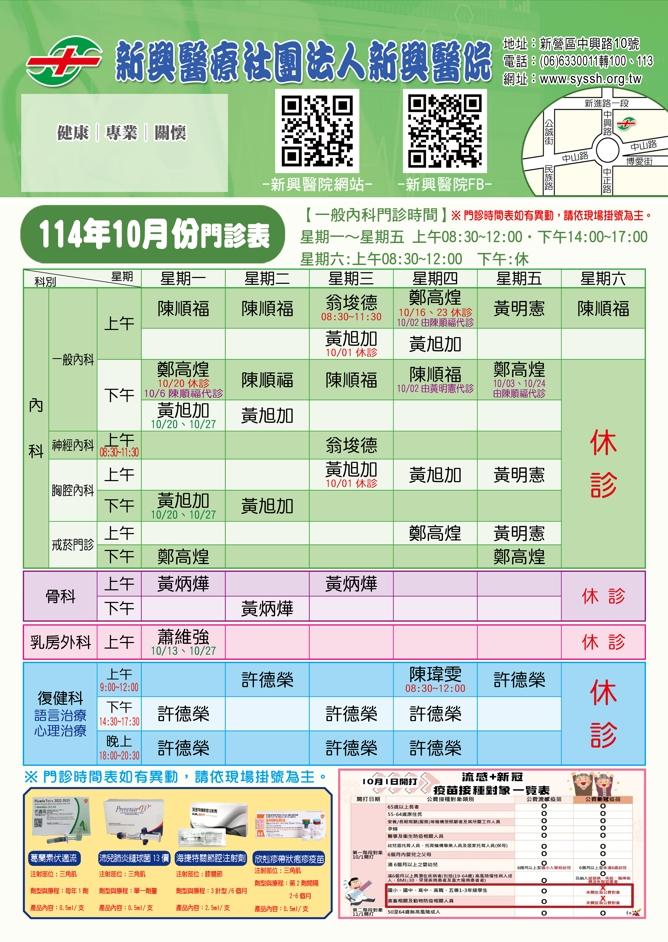10月門診表