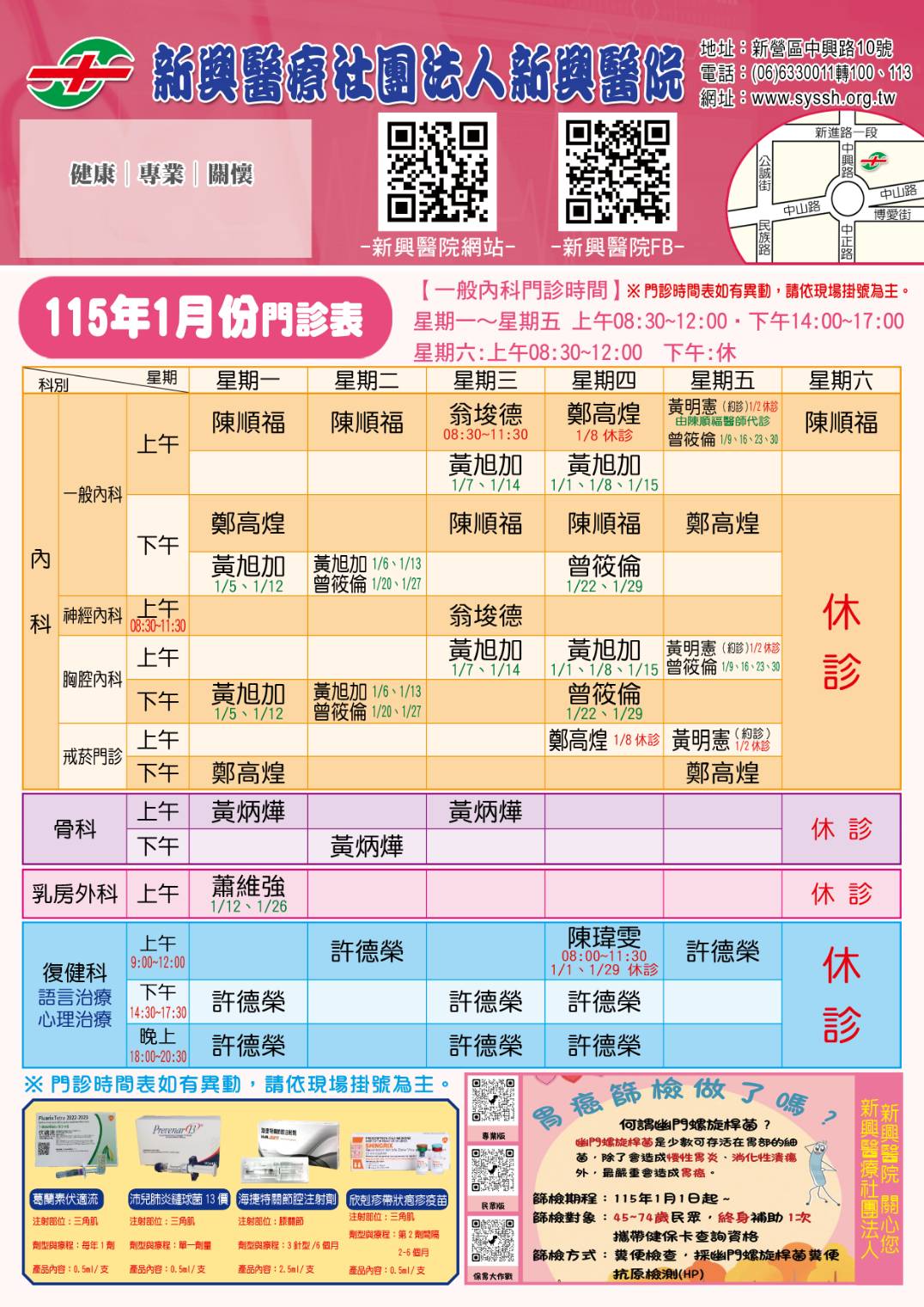 115年01月份---門診表