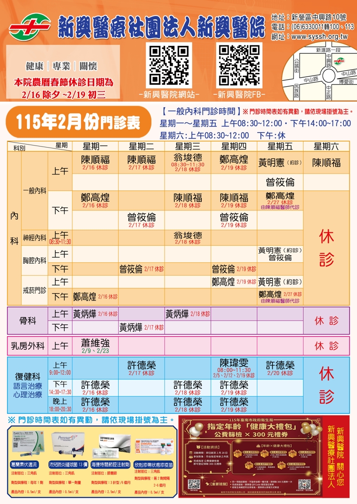 115年02月份---門診表